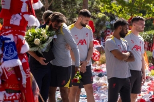 利物浦全队在安菲尔德场外缅怀若塔和安德烈-席尔瓦